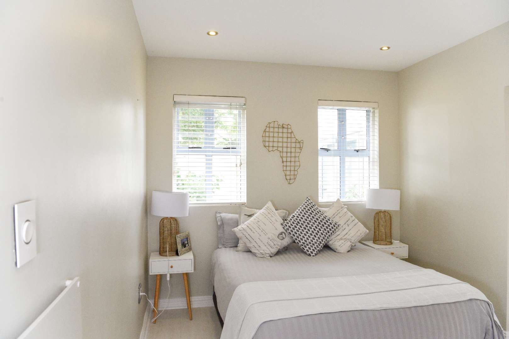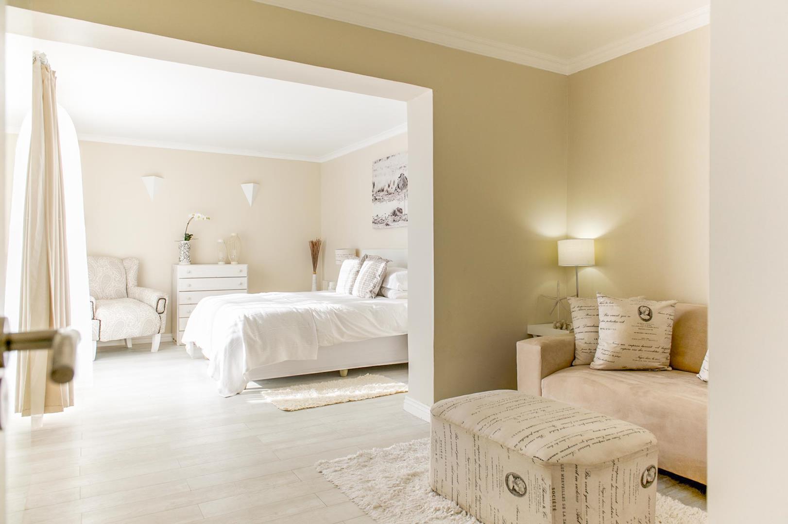 The property has been cleverly designed to be a main home with 3 bedrooms, each with its own bathroom, and an upstairs open plan living and entertaining area with a chef’s kitchen and exquisite lounge cum family room cum dining room leading out to a wind protected balcony with stunning sea views as well as views of the Durbanville Hills, plus, wait for it, a cleverly designed flat which will blow you away.