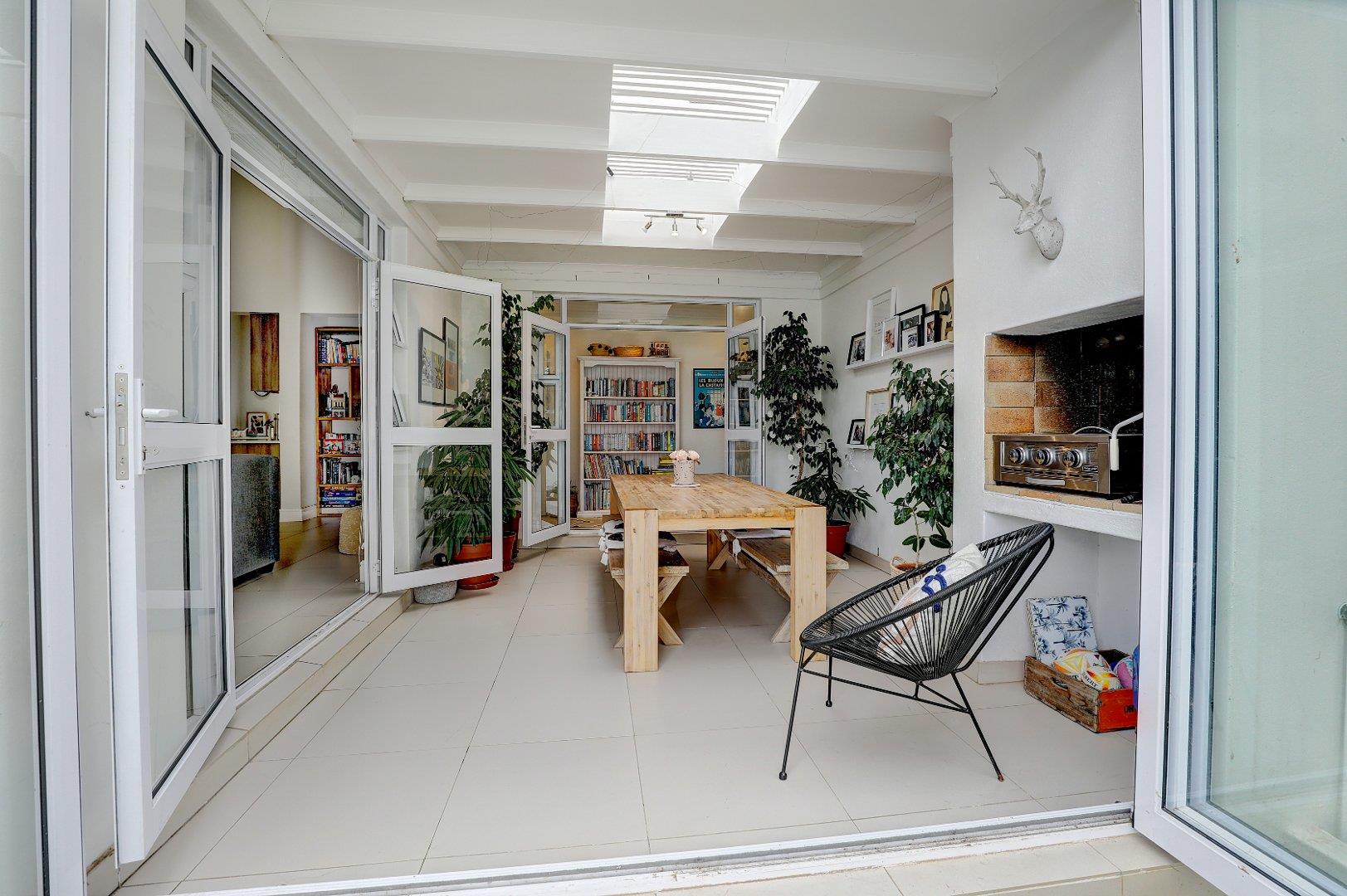 Upon entering this much loved, single storey home, the high exposed ceiling trusses and lighting add a stylish visual aesthetic to the living spaces of this residence! An inviting element is the double & stacking doors that open up to interleading entertainment areas and create an easy flow towards the garden. This unit has a larger than average enclosed plot with plenty of playgrounds as well as a pool.