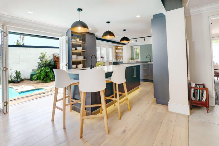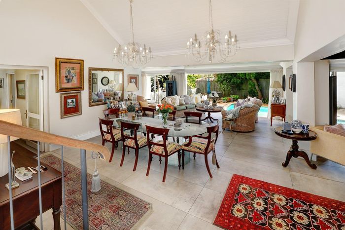 Family-focused entertaining and sunlit living in Protea Valley, overlooking Majik Forest and Stellenbosch Mountains. Double-volume living flows to private garden and pool; four bedrooms, three baths, double garage.