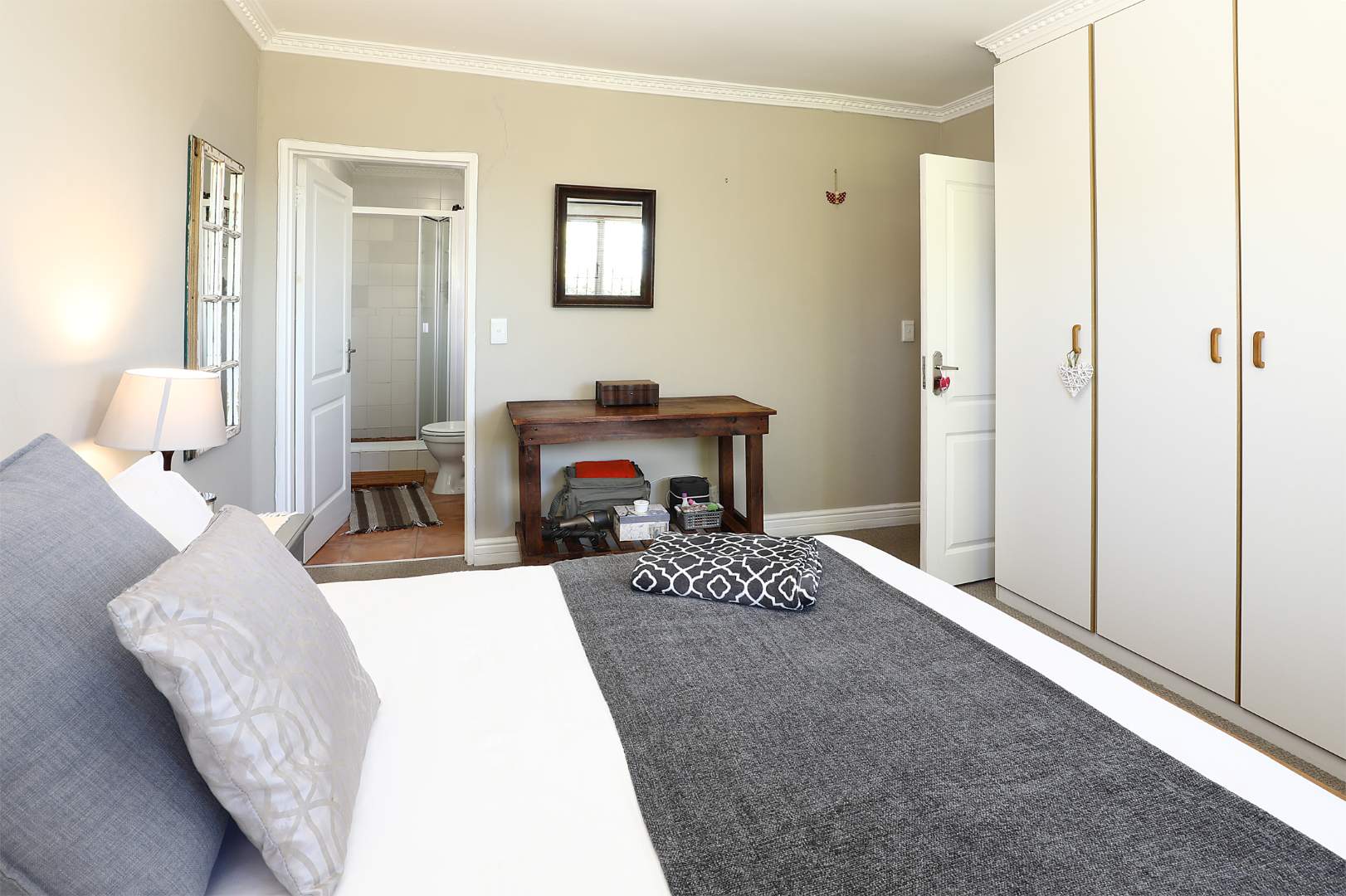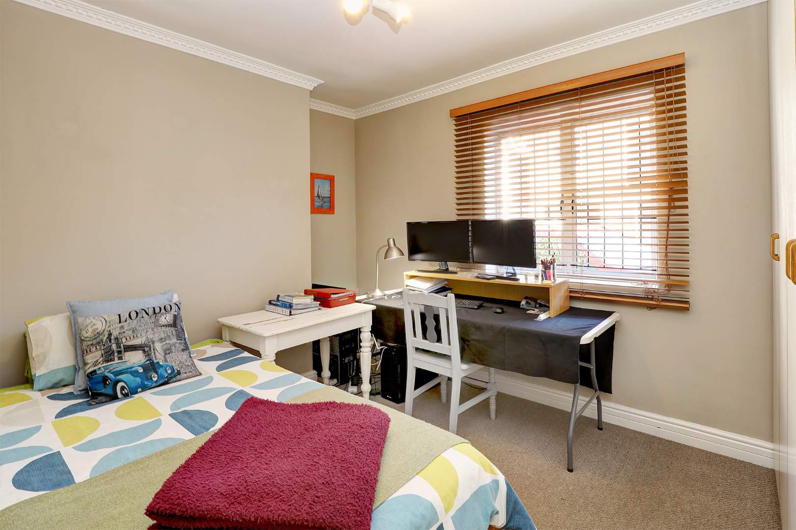 Also comprising of three bedrooms, one of which the carpeted main bedroom fitted with ample cupboards and suite bathroom. The other two bedrooms share a family bathroom.