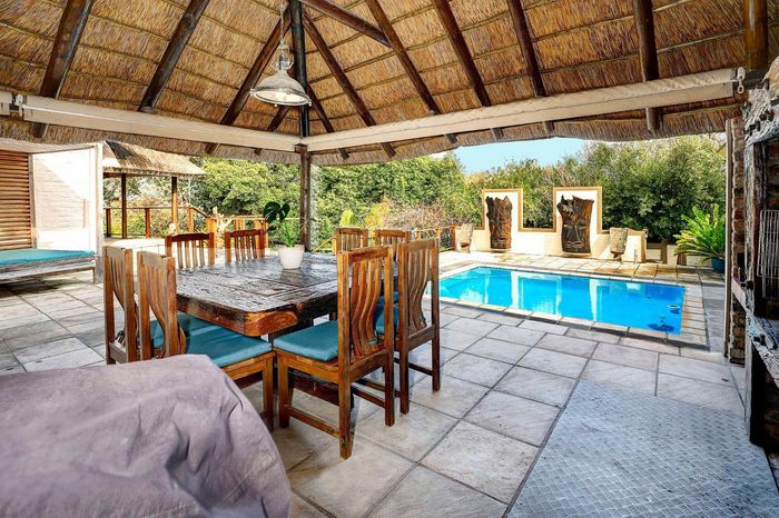 Private garden oasis with pool and braai patio in secure Hoheizen neighbourhood, open-plan living and quartz island kitchen, guest suite plus solar-backed underfloor heating. Five beds, four baths.