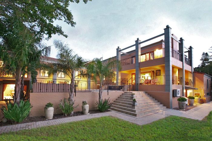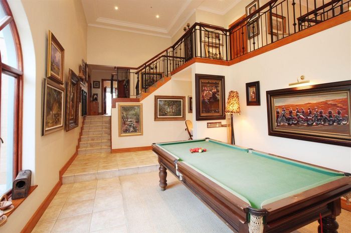 Entertainer's villa in Welgemoed, near Bellville Golf and Tygerberg Nature Reserve; braai room with cocktail bar opening to pool and jacuzzi — five beds, 5.5 baths, three garages.