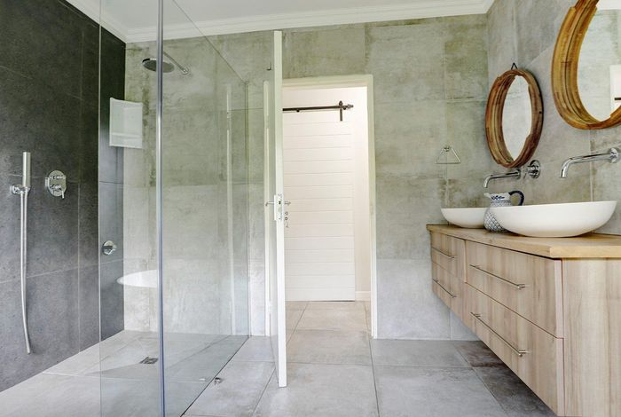 Entertainer's dream for relaxed family living with panoramic Boland Mountain views, double volume open plan living, sleek modern kitchen, four bedrooms and double garage.