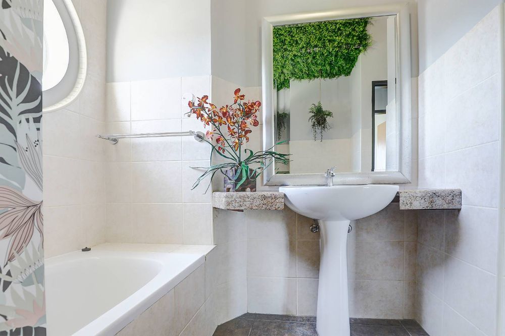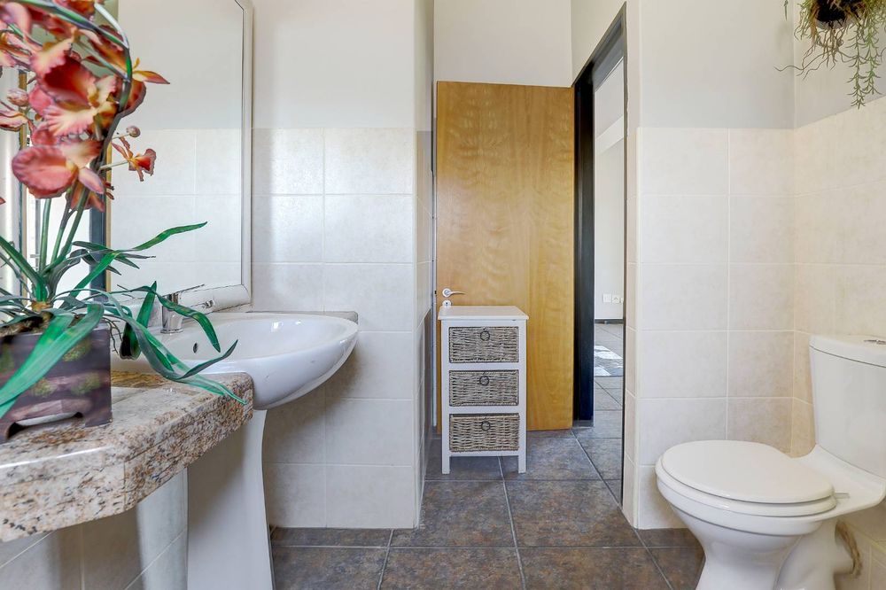 Open plan living area opens to under roof patio with beautiful views of the Durbanville hills and green strip where you can relax with your morning coffee or after work and listen to the birds singing in the trees.