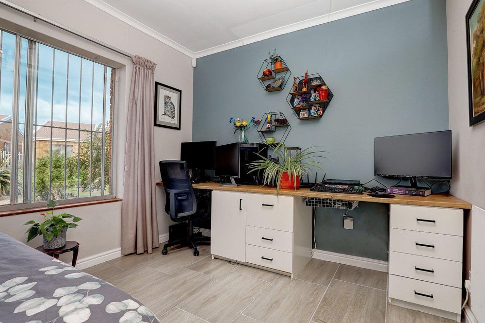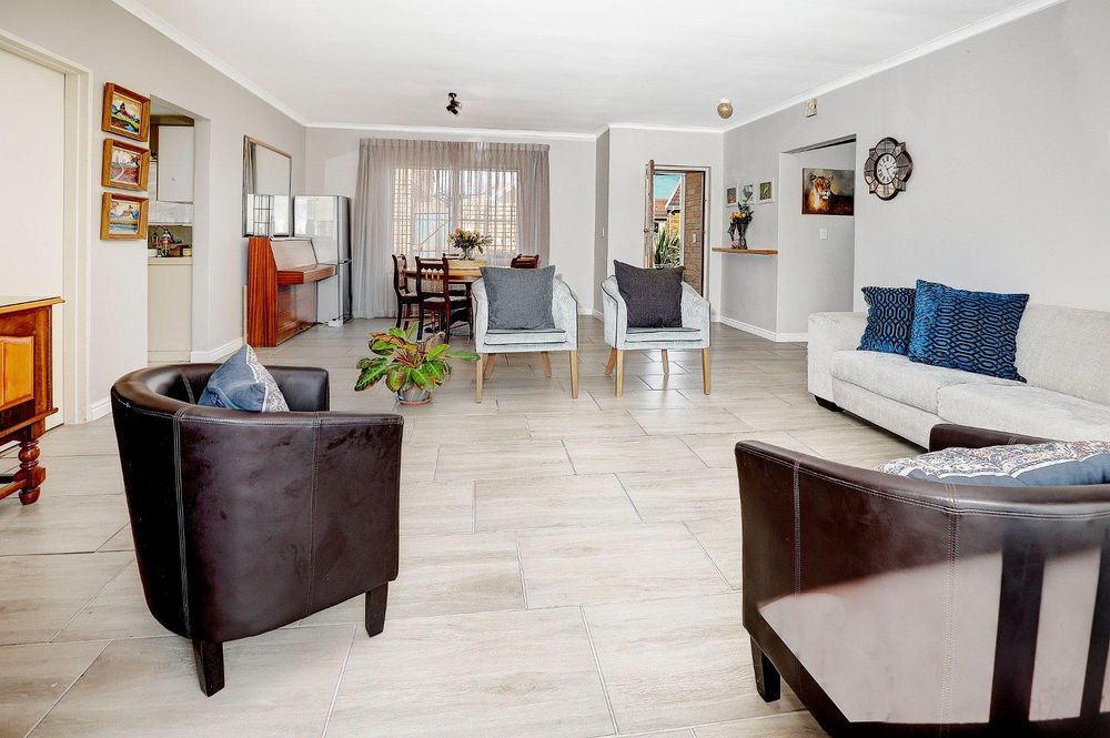 The home has 4 bedrooms and 2 bathrooms. (1 en-suite). The master bedroom has ample cupboard space and is sundrenched with light. The master bedroom has an en-suite with bath, shower, basin and toilet. The other 3 bedrooms have all tiled floors and built-in cupboards. Double garage. Alarm.