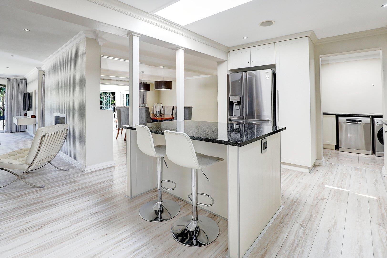 This stunning one-level home is designed for seamless indoor-outdoor entertaining, offering spacious open-plan living areas, modern finishes featuring beautiful wallpaper and custom-made curtains included. Perfect for families who love to host, this home combines luxury, comfort, and practicality in a well-maintained and manageable plot.