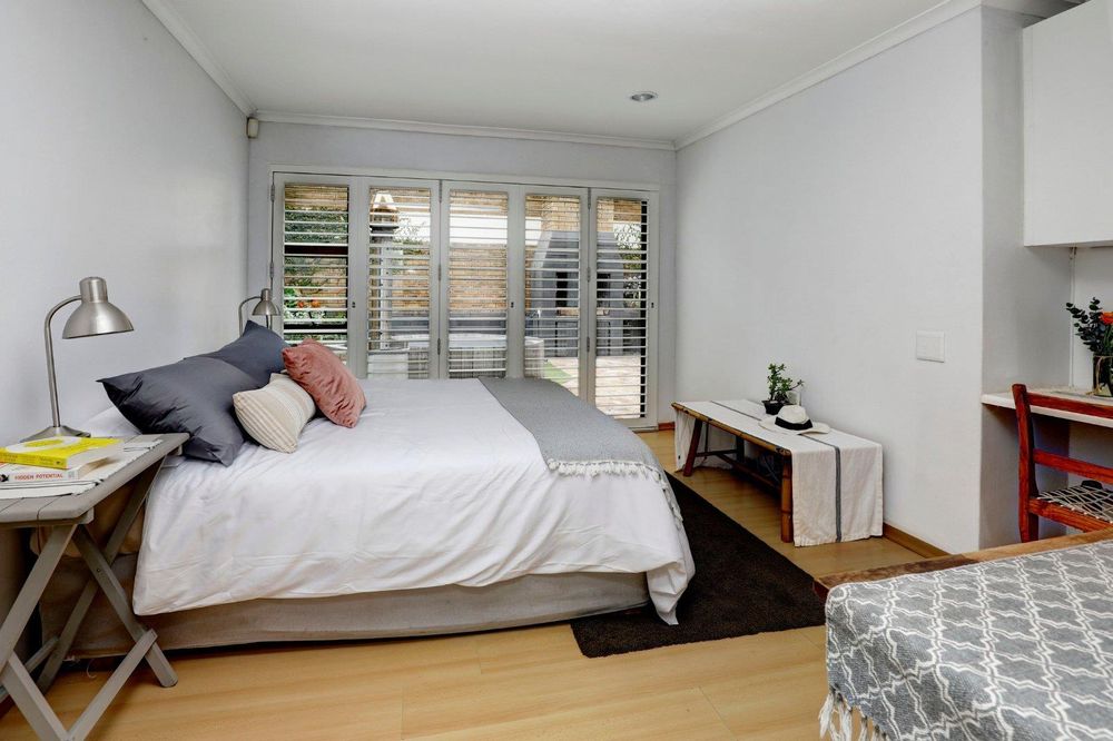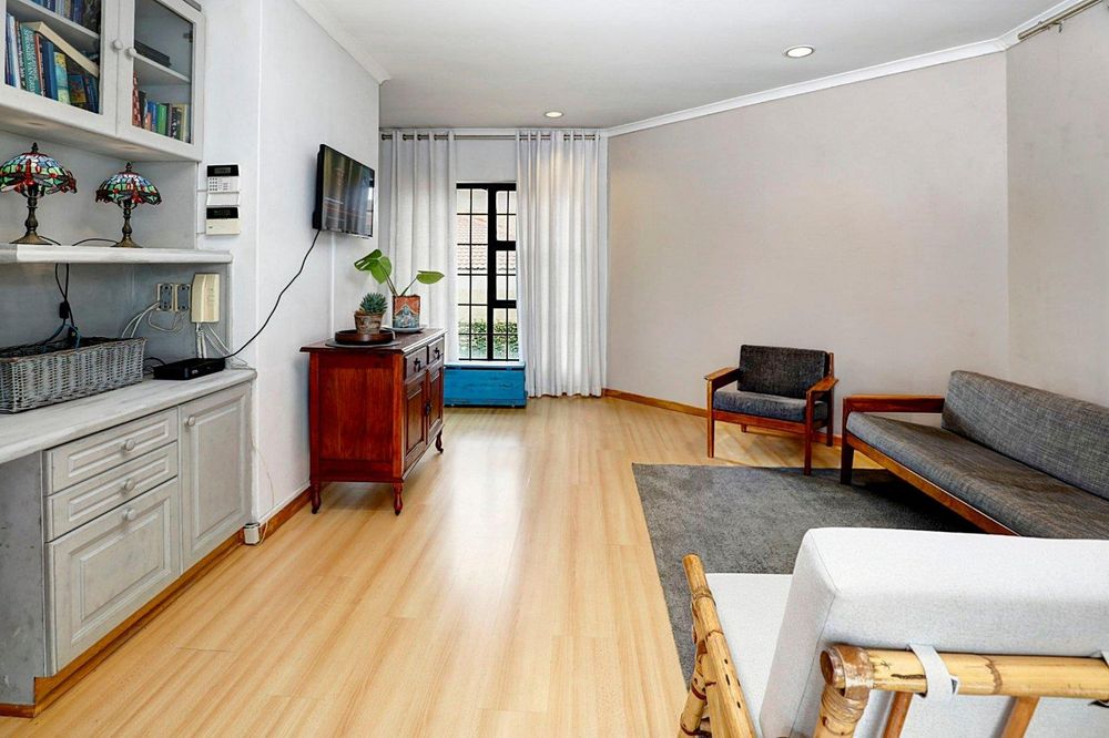 The ground level features open-plan living spaces, which includes a braai room that seamlessly flows out to the small manageable garden and outdoor braai area. This level also includes two spacious en-suite double bedrooms – the MES has recently been modernised.