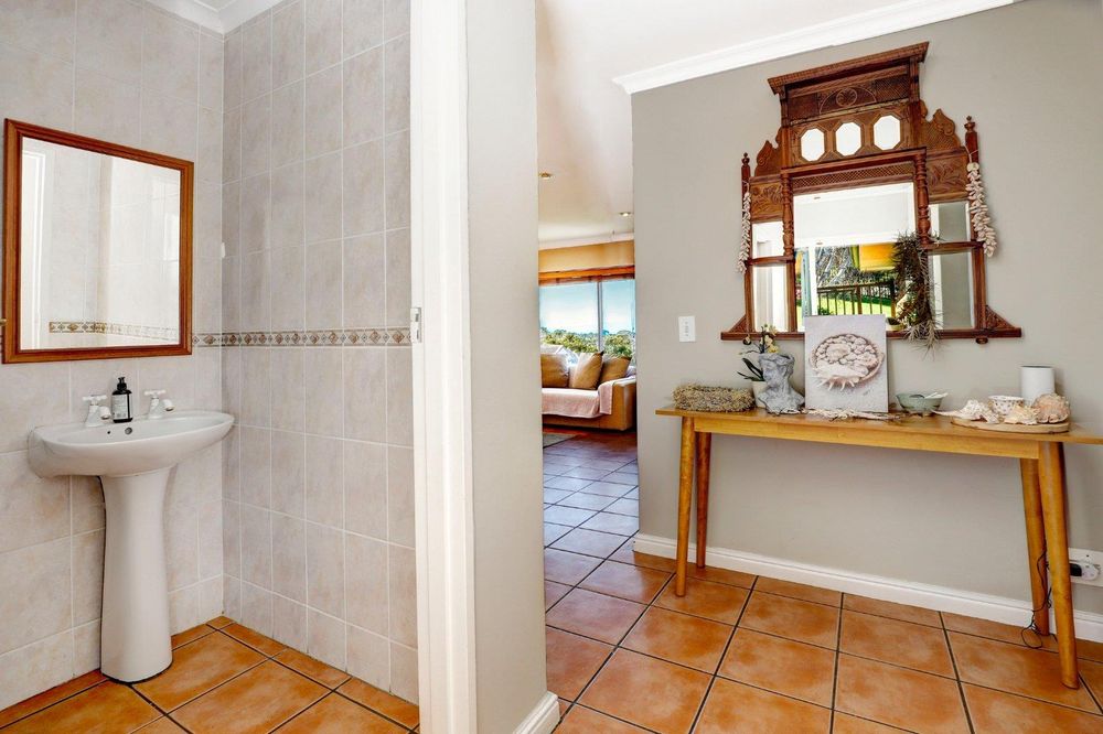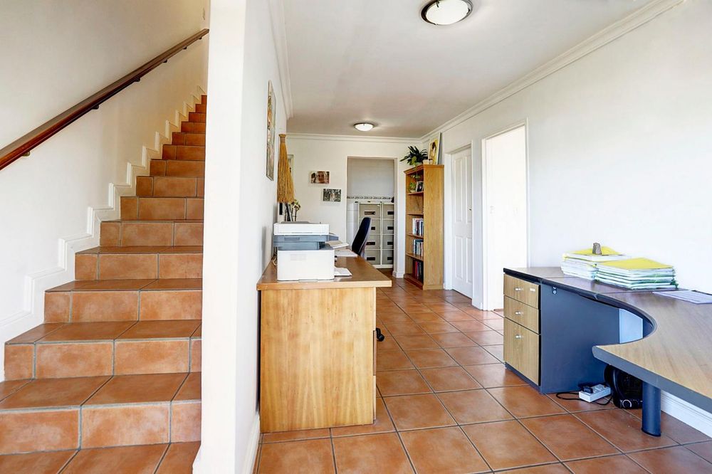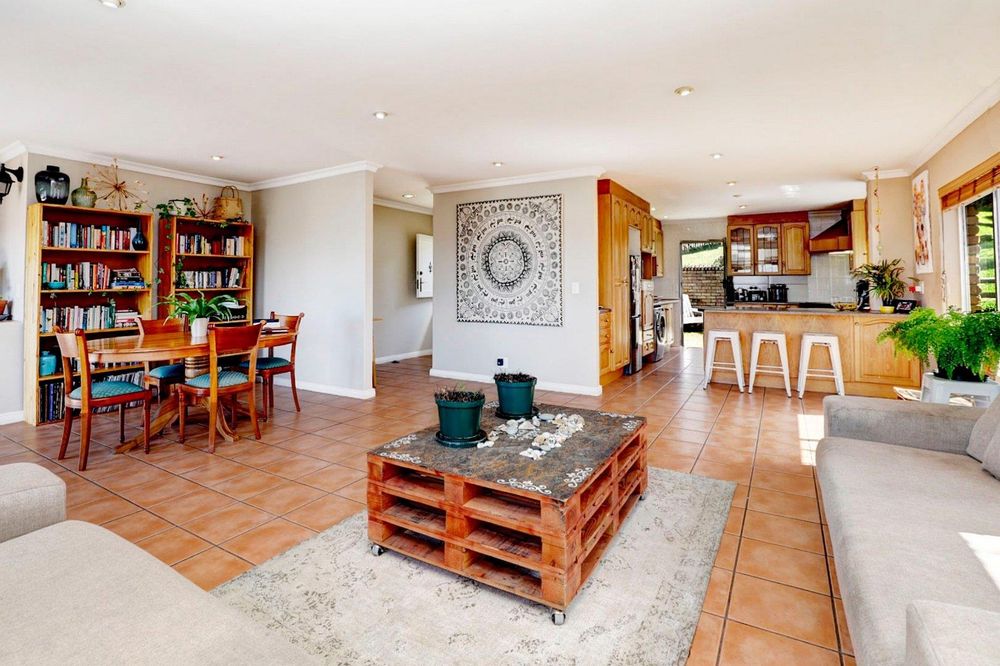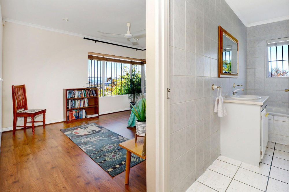 The upper level offers spacious open plan entertainment areas with large windows that optimises natural light and show cases the beautiful views of the Stellenbosch mountains. Sliding doors lead to a balcony, ideal for entertaining. The open plan kitchen is fitted with a breakfast nook, oven, hob and extractor fan. Also on the same level is the main bedroom with its signature corner window and en-suite bathroom.