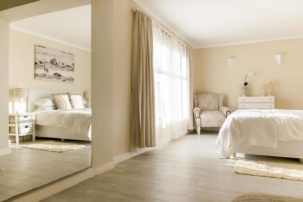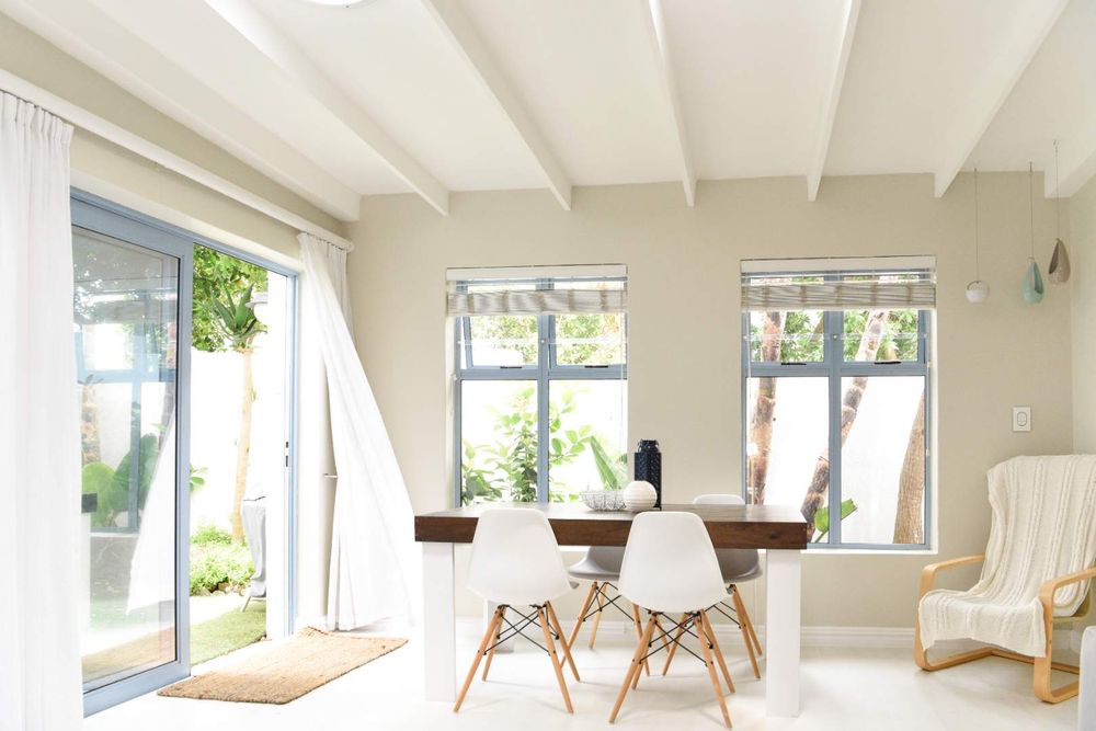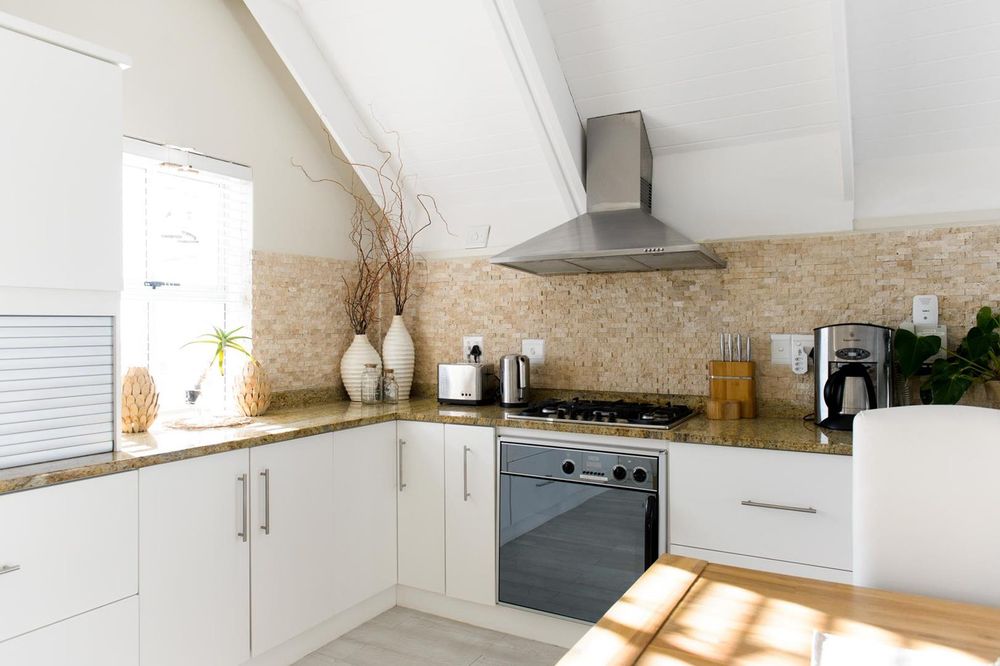 The property has been cleverly designed to be a main home with 3 bedrooms, each with its own bathroom, and an upstairs open plan living and entertaining area with a chef’s kitchen and exquisite lounge cum family room cum dining room leading out to a wind protected balcony with stunning sea views as well as views of the Durbanville Hills, plus, wait for it, a cleverly designed flat which will blow you away.