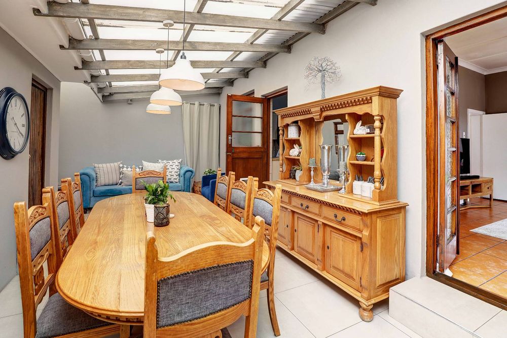 This meticulously maintained family home offers a tranquil retreat with its private location. Boasting 4 spacious double bedrooms and a study, this home provides ample space for a growing family. There is a braai room, off the main living area that adds on another casual space, creating an additional relaxed space for entertaining. The kitchen has a freestanding stove and plenty of cupboard space. Conveniently, the home offers direct access to the extra-length double garages. Enjoy the swimming pool and the delightful undercover entertainment braai area, perfect for dining around the pool.