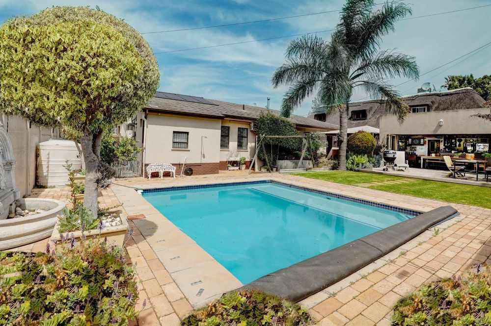 Ample Living Areas include a Formal Lounge/Dining Area, an Open Plan Family/Braai Area and a great asset to this home is the large outdoor Braai/Bar Room, featuring stackable doors that open onto the pool deck and heated pool. There is also a large shaded Stoep providing additional entertaining space. There are 2 bathrooms (full family bathroom and main en-suite) plus a convenient guest toilet.