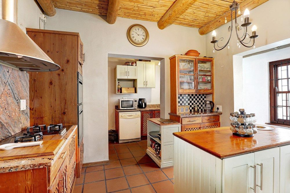 The farmhouse-style kitchen with granite finishes has ample cupboard space and includes a separate scullery.