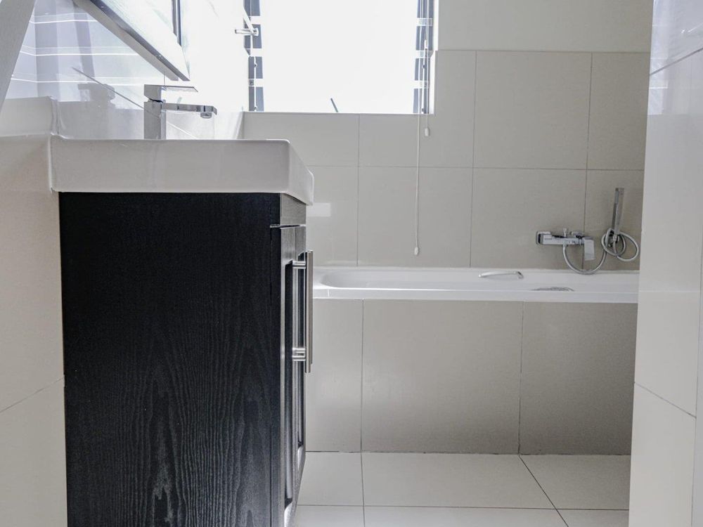 Retreat to the spacious main bedroom, featuring built-in cupboards and air-conditioning, along with a luxurious en-suite bathroom offering a rejuvenating bath, spacious shower, toilet, and double basin. A guest toilet on the main floor adds convenience for both residents and visitors alike.