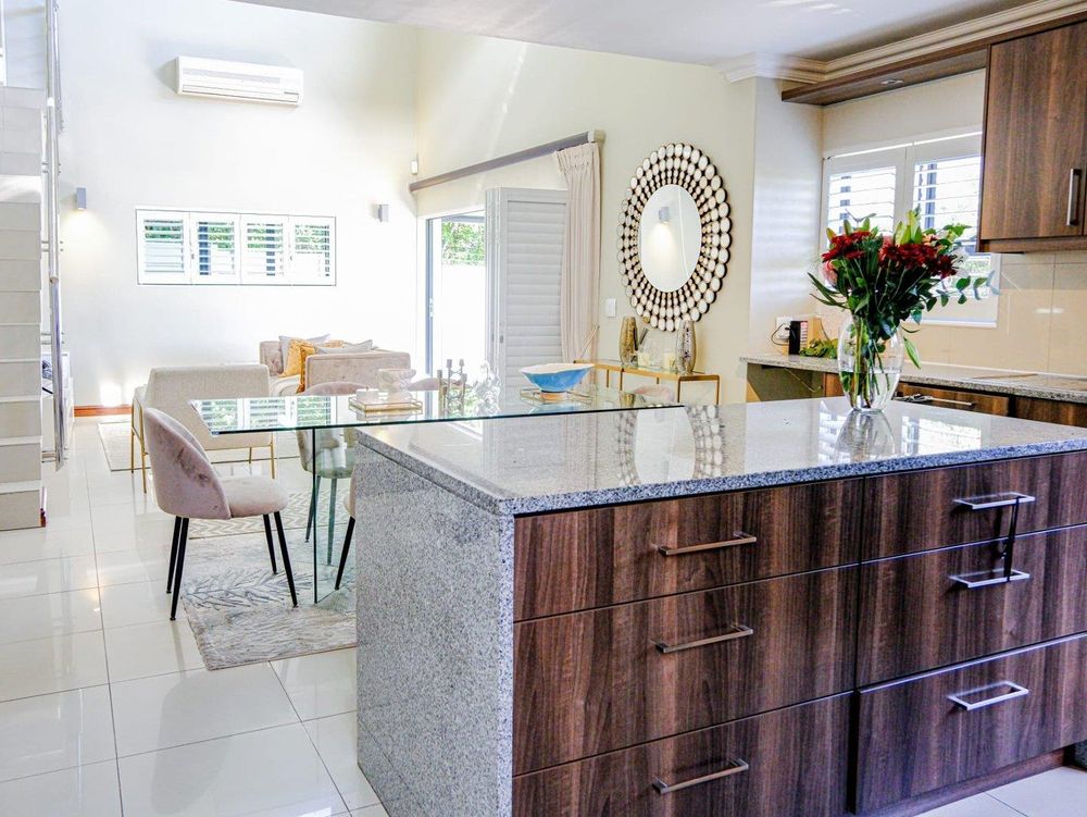 Step into the open-plan living areas, where high ceilings and abundant natural light create an inviting atmosphere for family gatherings. The kitchen, featuring a breakfast counter and stylish granite countertops, is equipped with all the essentials for effortless cooking, including a built-in oven, hob, and extractor fan.