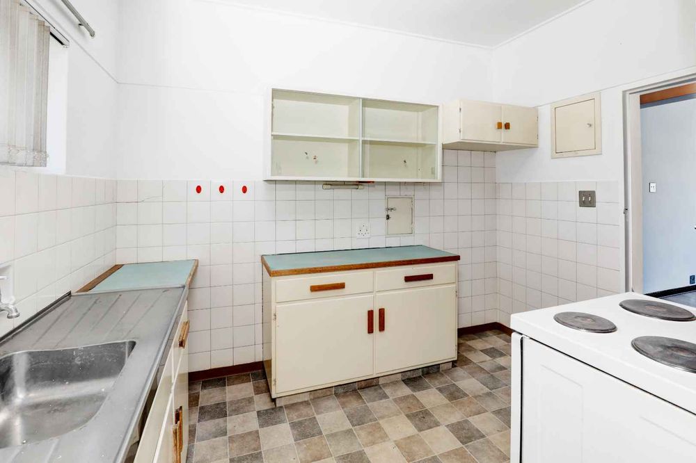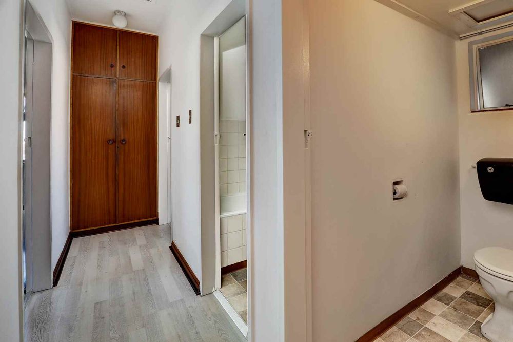 The apartment has one bathroom and a separate toilet. There is a laundry room leading off the kitchen. The bathroom and kitchen can benefit from a bit of upgrading.