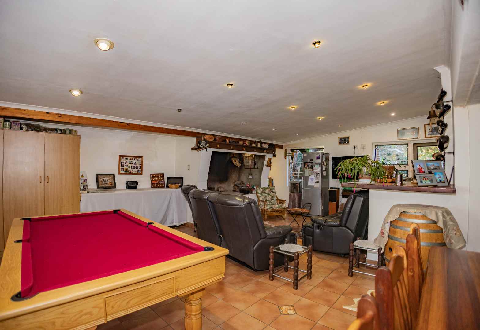 There is a great entertainment area with an indoor braai and access to the garden. It also boasts a private bar area.