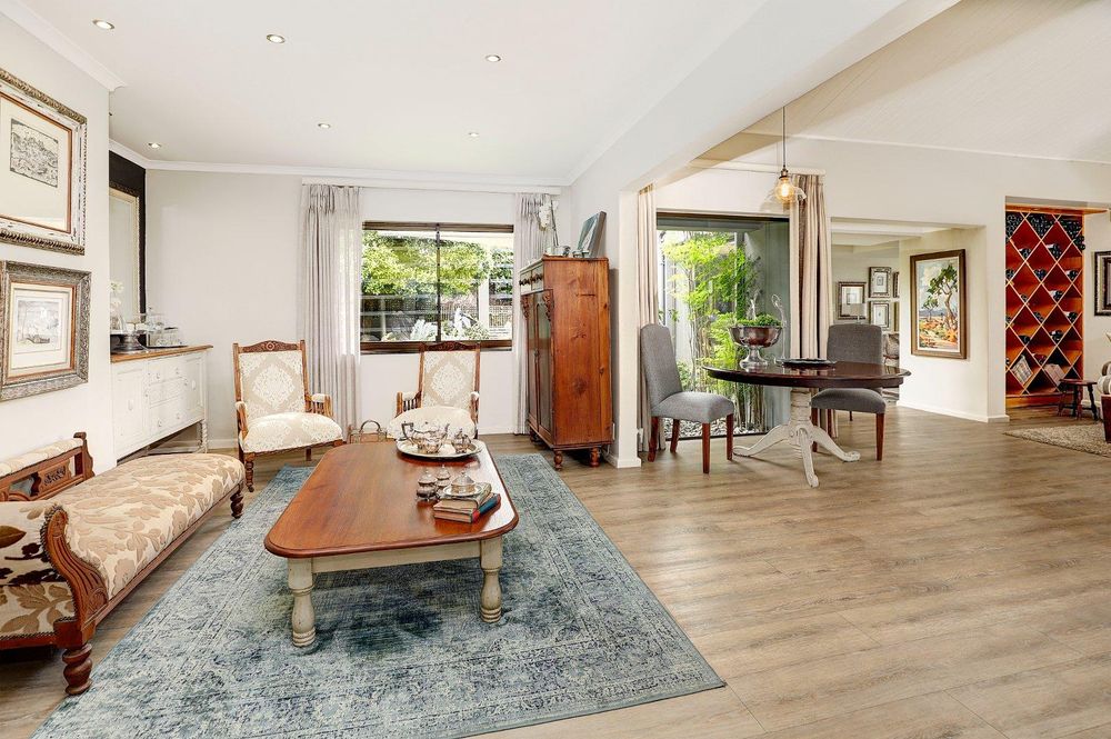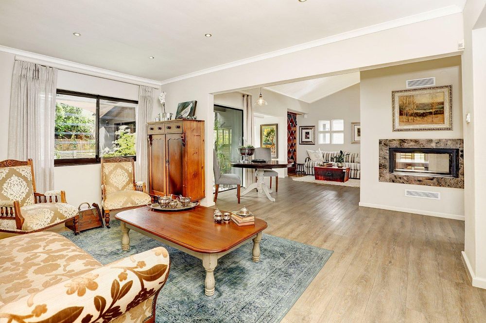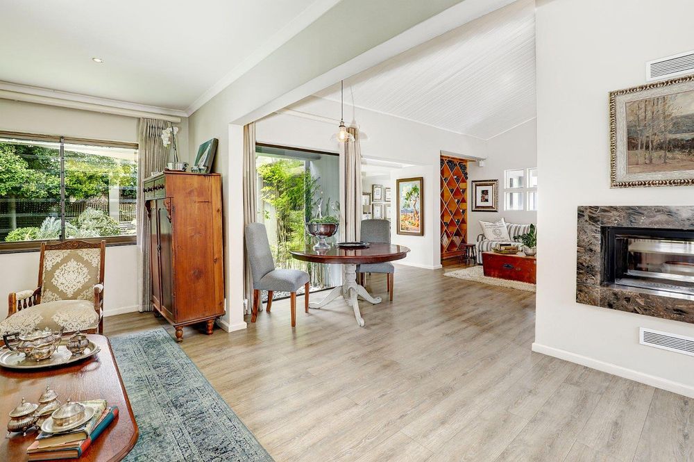 Multiple open plan entertainment areas, including dining room with double sided fireplace, formal lounge, TV lounge flow to pool and garden make this home perfect for hosting gatherings or relaxing with loved ones. A separate lounge with gas fireplace can serve as a spacious home office or executive study. This home has an exceptional feeling to it with its wide-open living spaces, sliding doors flowing to patios and a courtyard as well as big windows inviting the garden into the home.