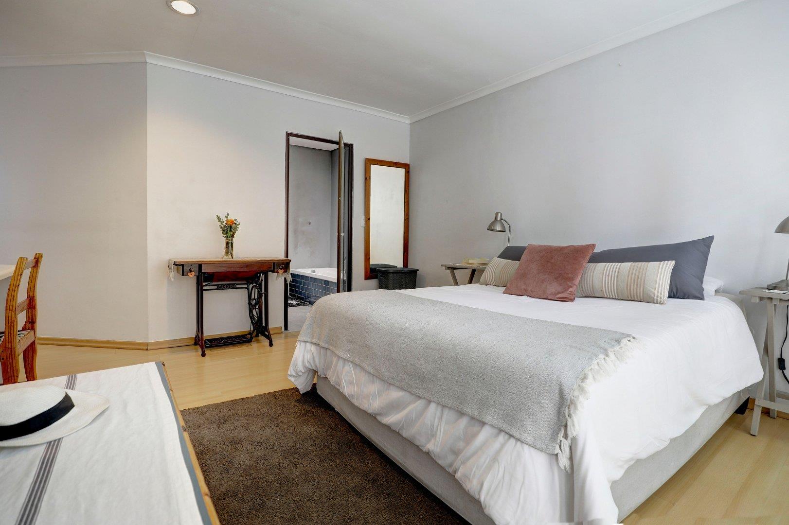 The ground level features open-plan living spaces, which includes a braai room that seamlessly flows out to the small manageable garden and outdoor braai area. This level also includes two spacious en-suite double bedrooms – the MES has recently been modernised.