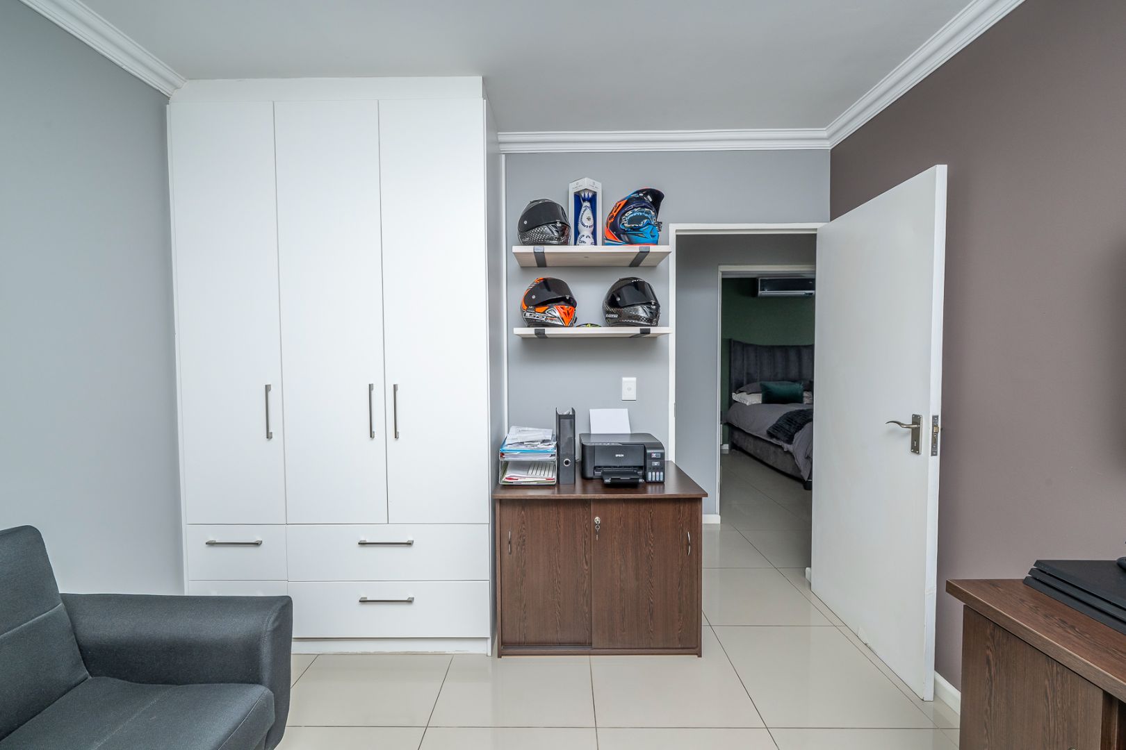 The home features 3 bedrooms, all fitted with built-in cupboards. The main bedroom with air conditioners for added comfort.
